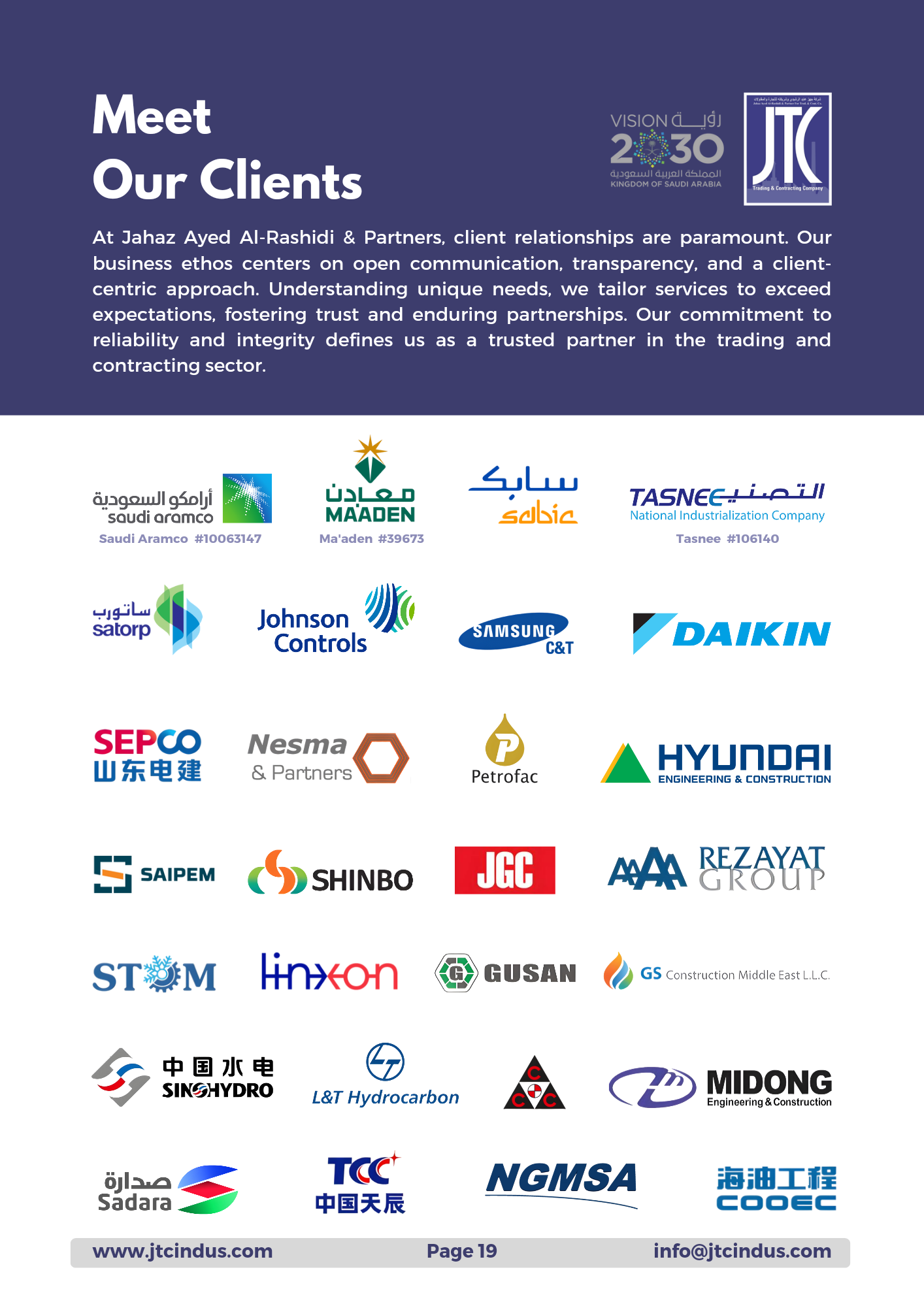 JTC boasts a diverse client base of over 50, showcasing expertise in construction and trading. Renowned for delivering bespoke projects that meet varied client needs effectively.